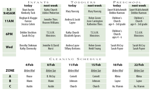 This Evening we have the opportunity to serve our commits with TEAM Sunday . There will be no evening service but please choose an activity below in which to serve.