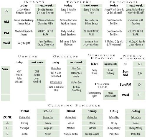 As a part of our service today, Children's Church for children age 4 through 3rd grade will begin at 11AM in the Community Room.