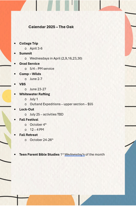 Our juniors and teens will be going to The Wilds Christian Camp next summer.