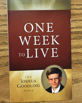 Joshua Goodling is a member of our church. At the age of four, he was diagnosed with terminal cancer and given one week to live. The doctors said his chances of survival were zero! That was almost 50 years ago! God has used his personal testimony and messages to impact and change lives all over the world.